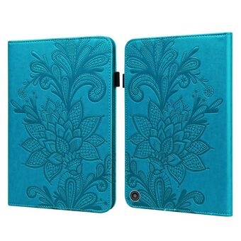 Για Amazon Kindle Fire HD 10 2021 / HD 10 Plus 2021 Lace Flower ανάγλυφο μοτίβο οριζόντια Flip δερμάτινη θήκη με θήκη & υποδοχές για κάρτες & πορτοφόλι & κορνίζα φωτογραφιών (μπλε)