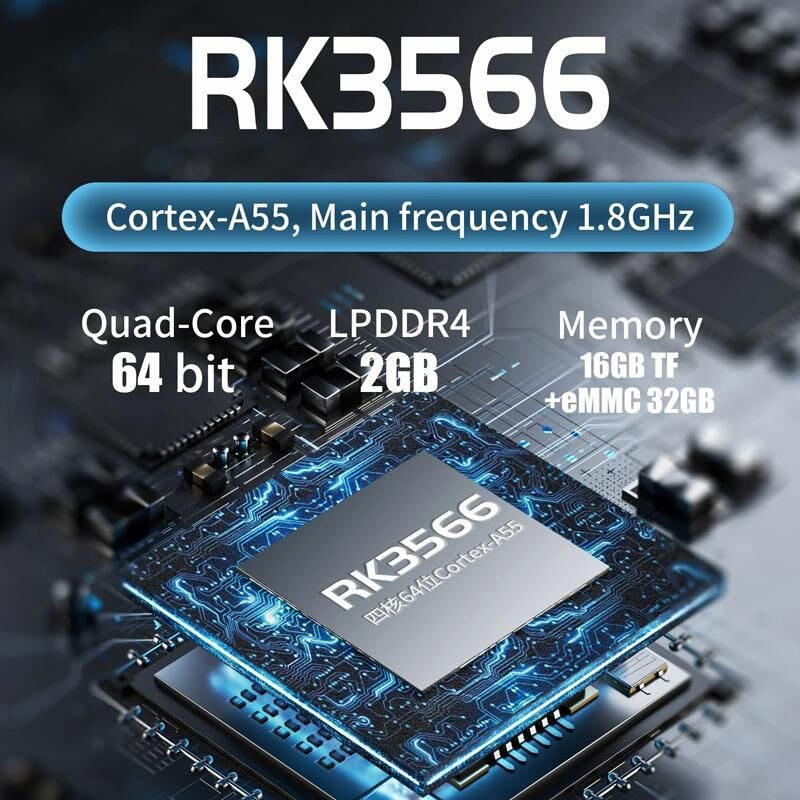 4. CPU: RK3566 quad-core 64-bit Cortex-A55, clocked at 1.8GHz