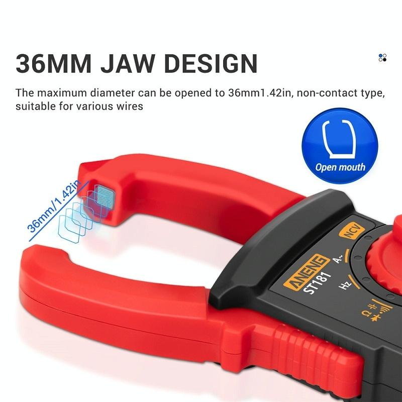 2. Το μεγάλο άνοιγμα της σιαγόνας των 36mm μπορεί να μετρήσει χωρίς να αγγίξει ή να διακόψει το κύκλωμα, Αυτόματη εμβέλεια, έξυπνη και αποδοτική λειτουργία, αποκτήστε επιστημονικά και ακριβή αποτελέσματα