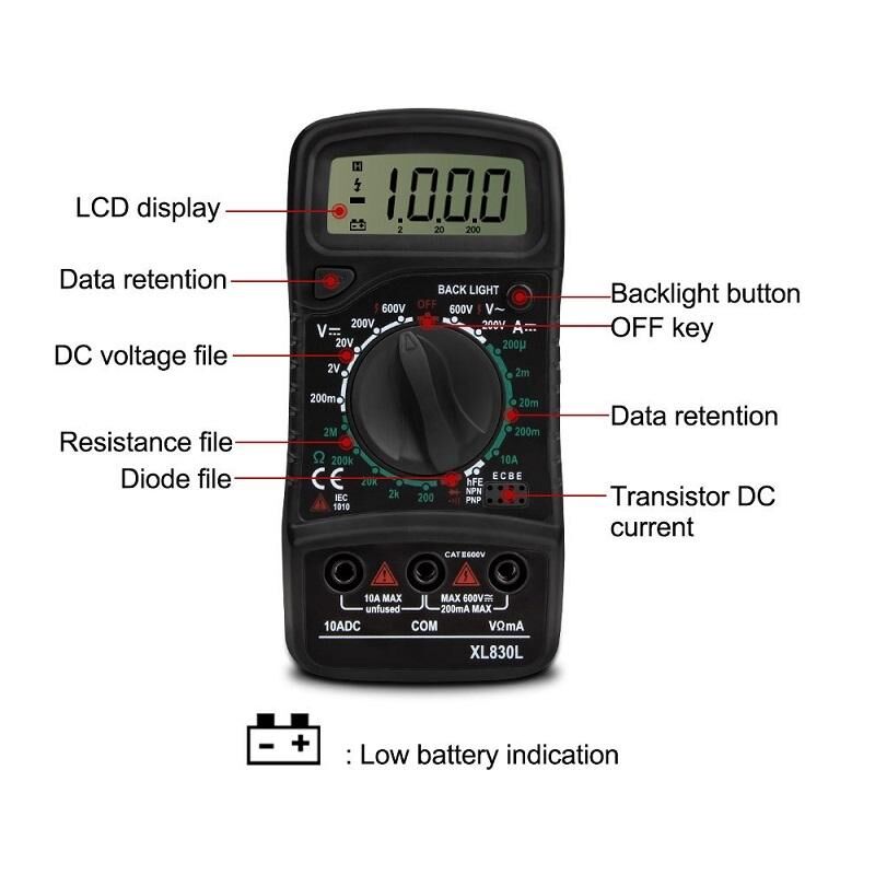 1. Τύπος μπαταρίας: 6F22 9V (δεν περιλαμβάνεται)