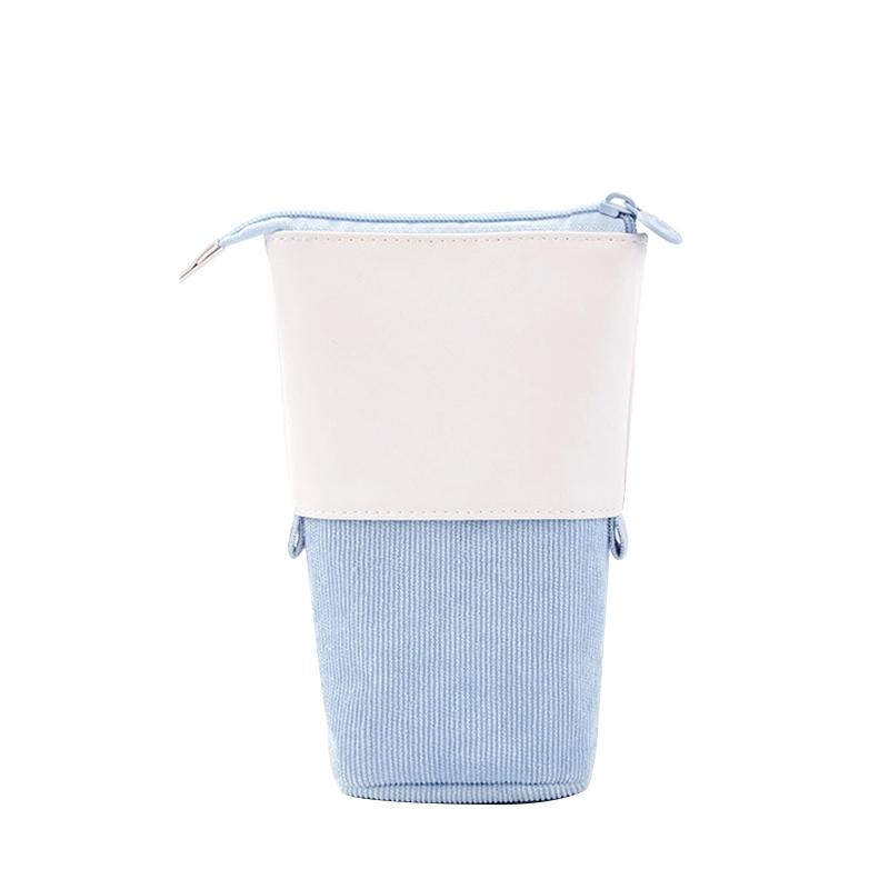 ANGOO Corduroy Retractable Drop-Down Pencil Case Student Stationery Storage Bag(Light Blue) (ANGOO)