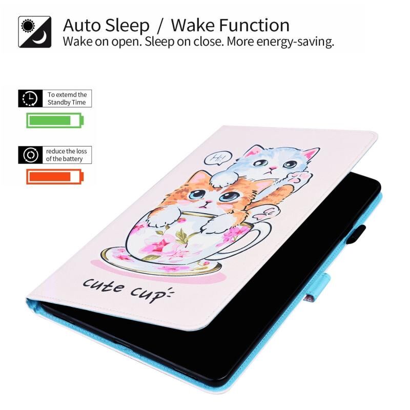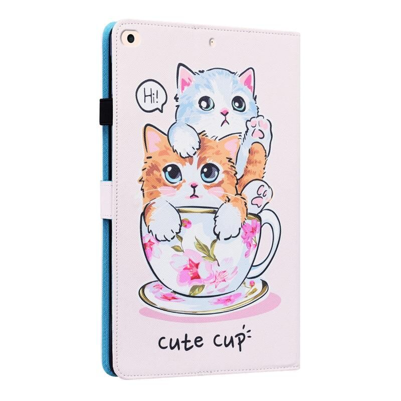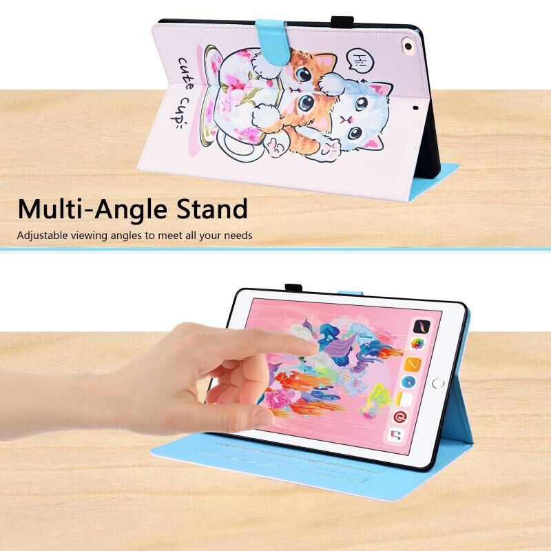 Θήκη Δερμάτινη με σχέδιο ζώου, οριζόντιο άνοιγμα, με βάση & θήκες καρτών & κορνίζα φωτογραφίας & λειτουργία αφύπνισης/ύπνου για iPad 9.7 2018 / 2017 (Αδέρφια Γάτες)