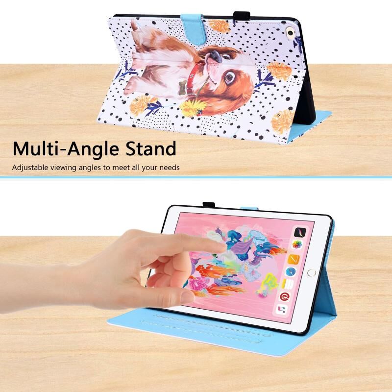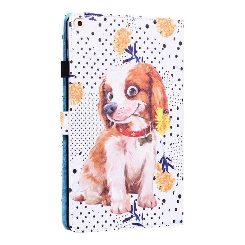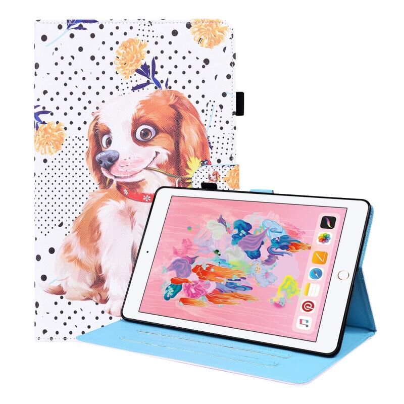 Θήκη Δερμάτινη με σχέδιο ζώου, οριζόντια αναδίπλωση, με βάση & θήκες καρτών & κορνίζα φωτογραφίας & λειτουργία αφύπνισης/ύπνου για iPad 9.7 2018 / 2017 (Λουλούδι σκυλάκι)