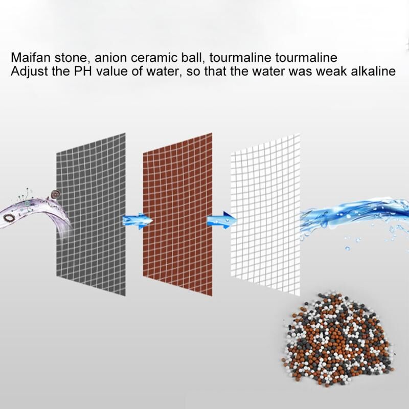2. Negative ion balls, activated carbon, nano-ceramic filter, remove chlorine, heavy metal, bacteria, and etc from the water.