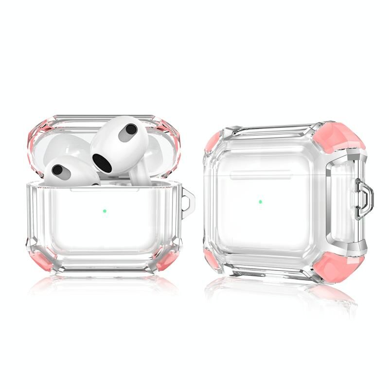 Anti-drop Transparent PC Two-color Earphone Protective Case with Hanging Loop for AirPods 3(Pink)