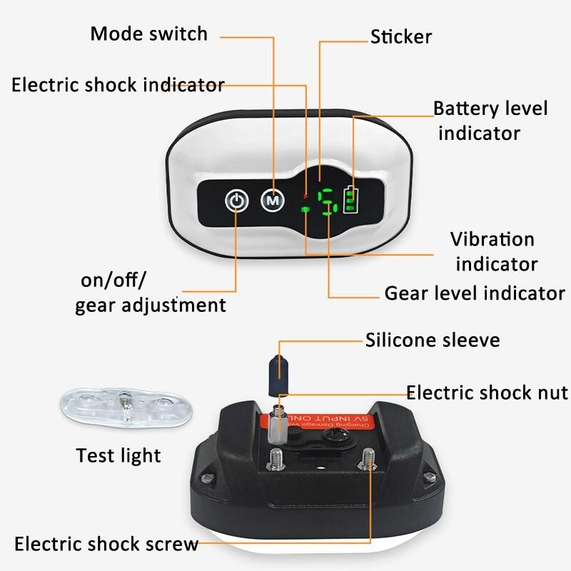 1. Το κολάρο κατά των γαυγισμάτων διαθέτει τρεις λειτουργίες εκπαίδευσης (δόνηση/ηλεκτρικό σοκ/προειδοποιητικός ήχος) και πέντε επίπεδα ευαισθησίας. Απλώς πατήστε το κουμπί "M" για να επιλέξετε την επιθυμητή λειτουργία και μπορείτε εύκολα να ρυθμίσετε την ευαισθησία ώστε να προσαρμοστεί στο περιβάλλον. 2. Η έξυπνη οθόνη LED εμφανίζει καθαρά την κατάσταση λειτουργίας και το επίπεδο ισχύος. 3. Ευφυής και ασφαλής αυτόματη λειτουργία αναστολής λειτουργίας. 4. Ρυθμιζόμενο κολάρο εκπαίδευσης, κατάλληλο για σκύλους που ζυγίζουν μεταξύ 5 και 60 κιλών και έχουν περιφέρεια λαιμού μεταξύ 8 και 25 ίντσες. 5. Δεν απαιτείται τηλεχειριστήριο, προστασία από ψευδείς ενεργοποιήσεις: Υιοθετώντας μια αναβαθμισμένη έκδοση του έξυπνου τσιπ αναγνώρισης γαυγίσματος σκύλου, μπορεί να εισέλθει αυτόματα στη λειτουργία εργασίας χωρίς τηλεχειριστήριο. Αυτό βοηθά στην έγκαιρη, αποτελεσματική και ασφαλή διακοπή του γαυγίσματος του σκύλου. Η έξυπνη συσκευή αντιπαρεμβολής φιλτράρει αποτελεσματικά τους άσχετους ήχους και αποτρέπει τις ψευδείς ενεργοποιήσεις, παρέχοντας καλύτερη προστασία για τον σκύλο σας από τυχαία ηλεκτροπληξία. 6. Ενσωματωμένη μπαταρία λιθίου 300 mAh, η οποία μπορεί να φορτιστεί γρήγορα πλήρως σε 2-3 ώρες και μπορεί να χρησιμοποιηθεί για 15 ημέρες. 7. Αδιάβροχος σχεδιασμός IP67, υποστηρίζει κολύμπι σκύλων και χρήση στη βροχή, πλήρως σφραγισμένη διαδικασία συναρμολόγησης. 8. Μέγεθος κολάρου: 77 cm σε μήκος.
