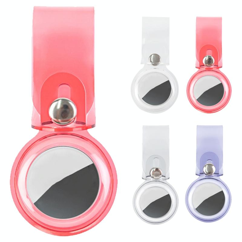 Anti-scratch Clear TPU Shockproof Protective Cover Case with Hook Loop For AirTag(Transparent Red)