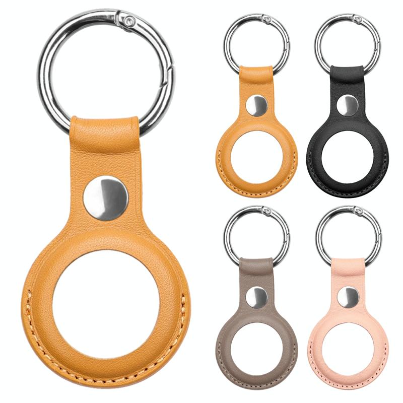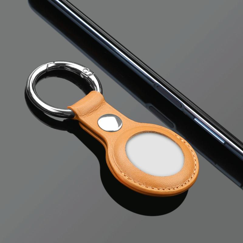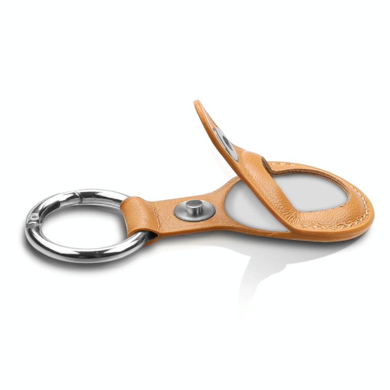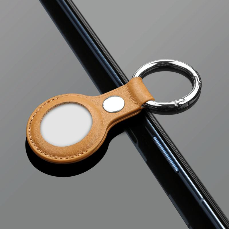 Θήκη από δέρμα αγελάδας με αντιχαρακτική επικάλυψη και αποσπώμενο κρίκο μπρελόκ για AirTag (Γκρι)