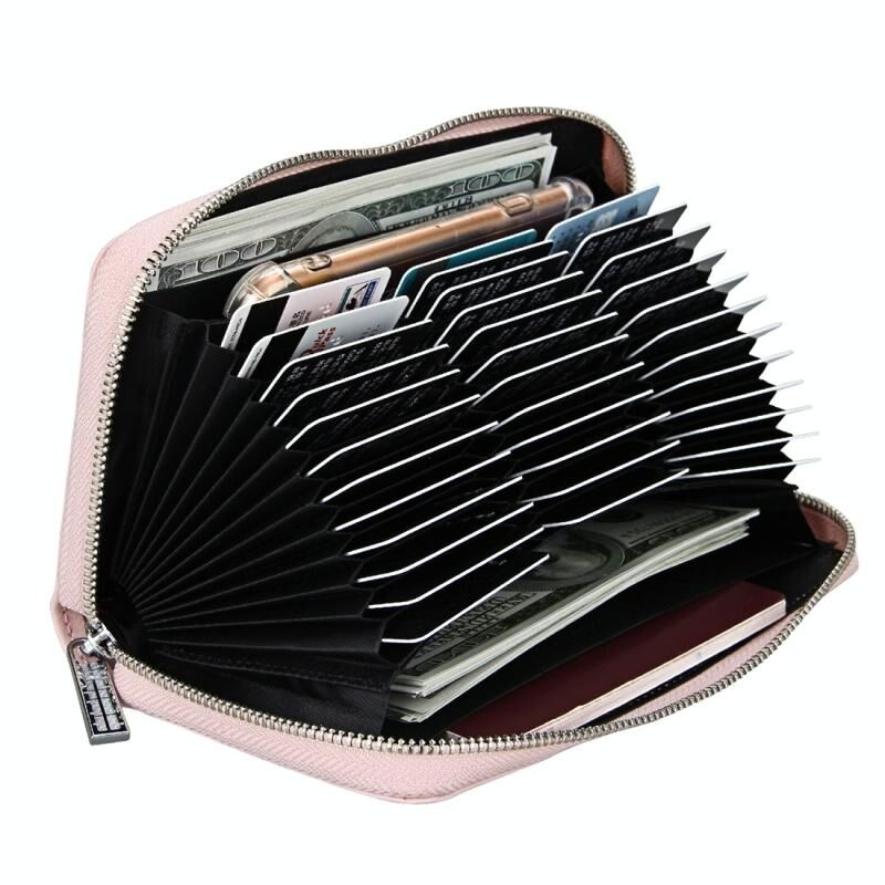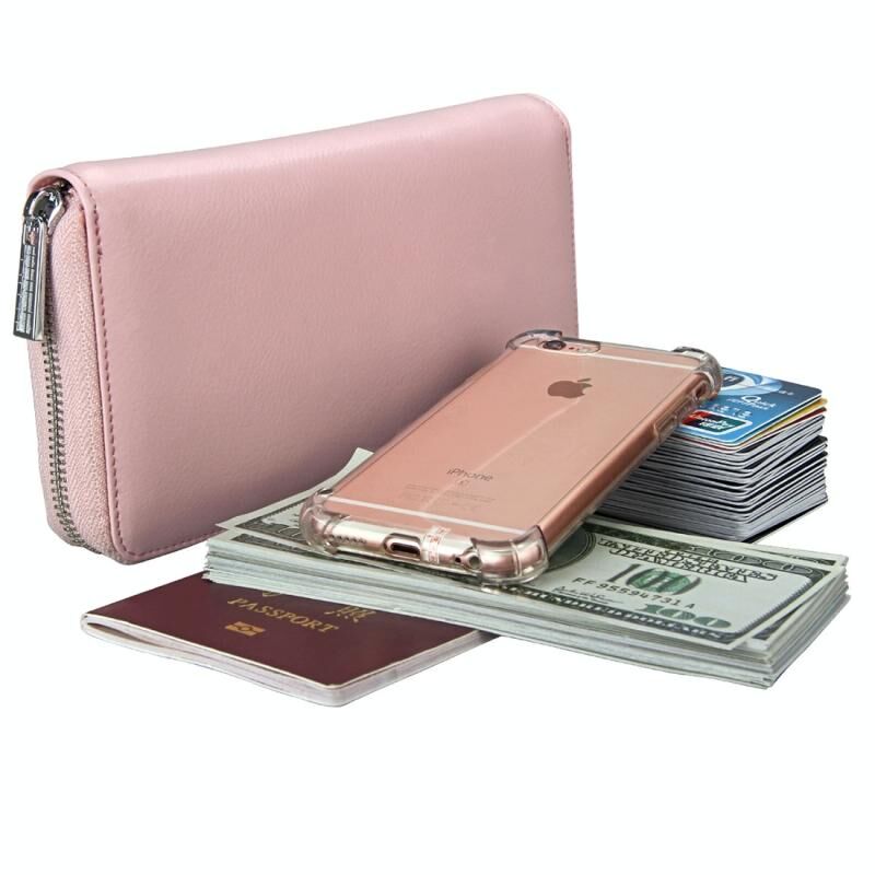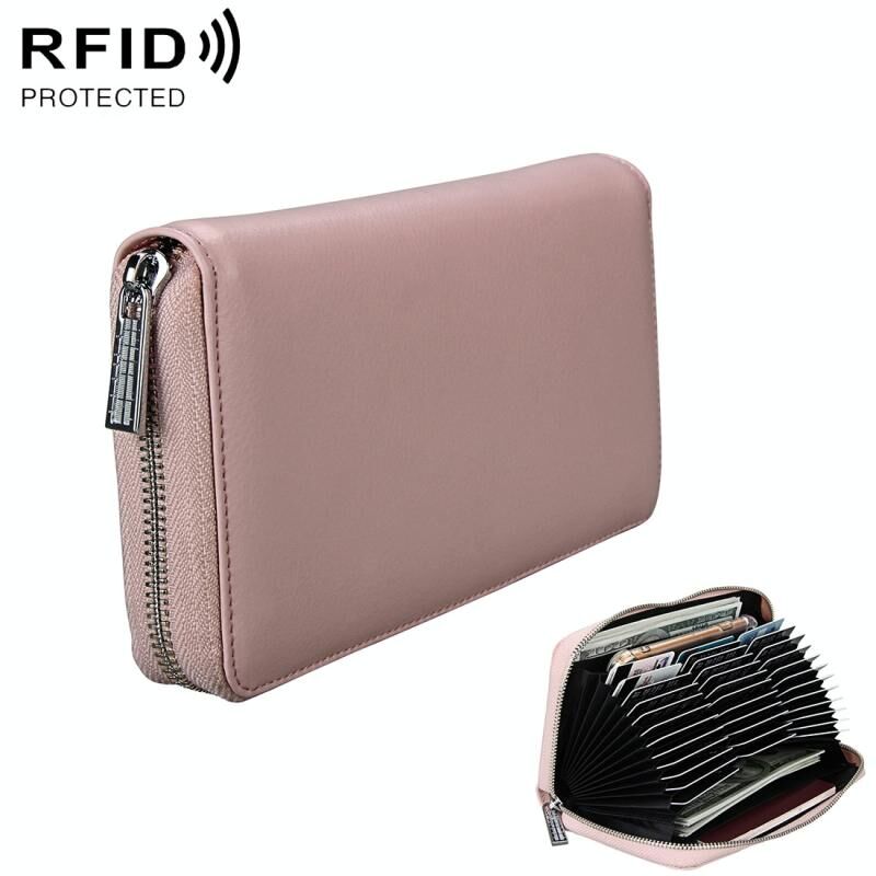 Αντιμαγνητικό RFID Μεγάλης χωρητικότητας μακρύ στυλ γνήσιο δέρμα Διαβατήριο πακέτο / Πολυλειτουργικό και πολλές υποδοχές κάρτας πακέτο κάρτας (ροζ)