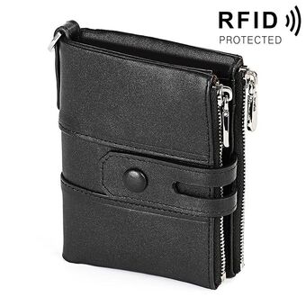3529 Retro Crazy Horse Texture Double Zipper Anti-magnetic RFID Wallet for Man with Card Slots (Black)