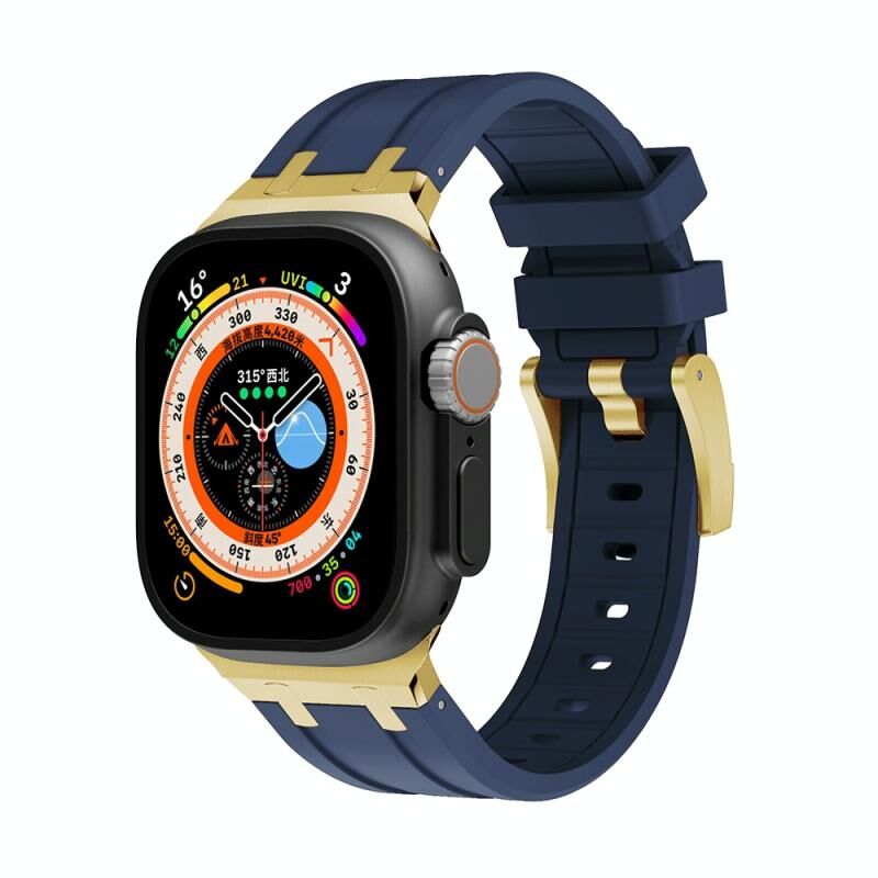 Λουράκι Σιλικόνης AP για Apple Watch 9 45mm (Χρυσό Μπλε)