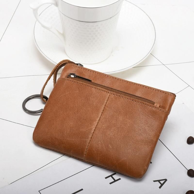 AP127 Men/Ladies Change Clutch Zipper Wallet Short Cowhide Card Holder(Brown)