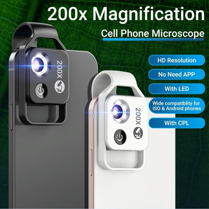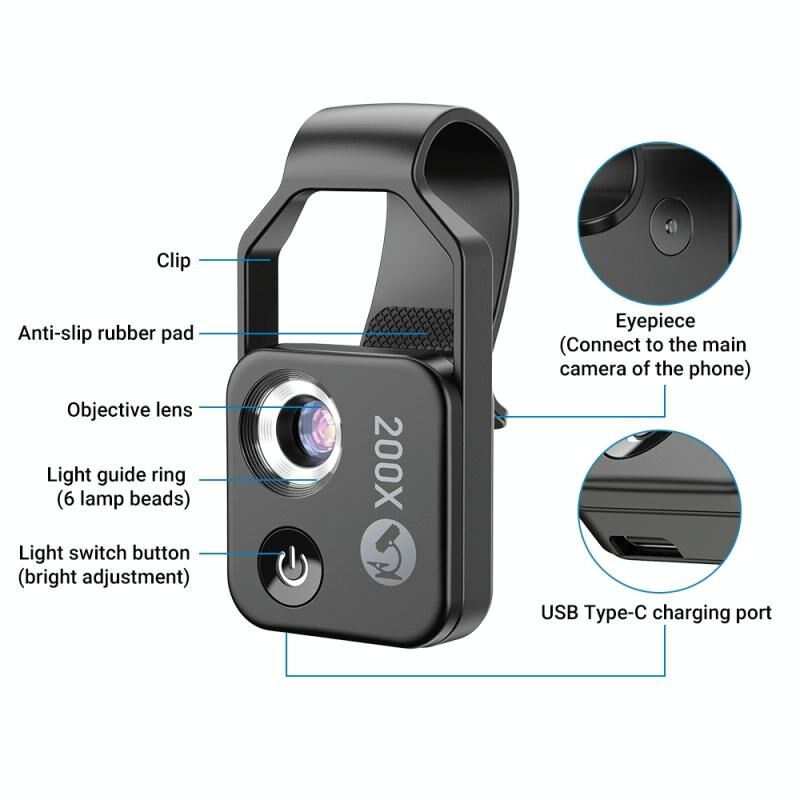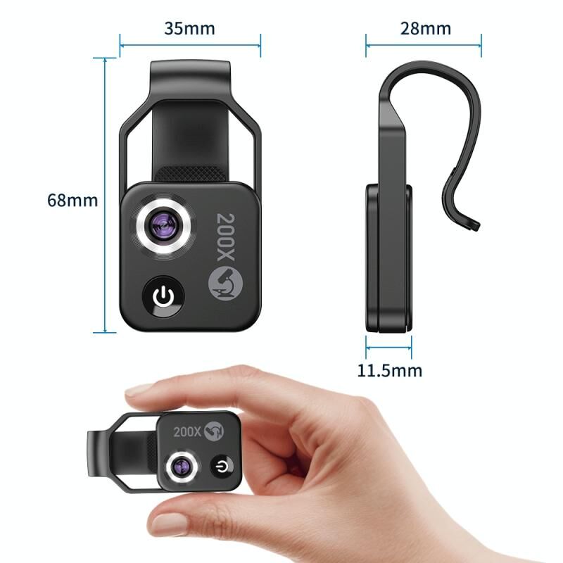 24. Το μικροσκόπιο χρησιμοποιείται σε συνδυασμό με ένα κλιπ και η μεγέθυνση είναι περίπου 200x, το οποίο μπορεί να ταιριάζει στα περισσότερα κινητά τηλέφωνα της αγοράς