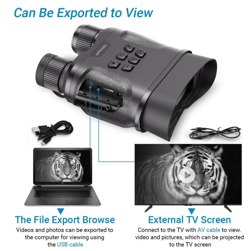 1. Binocular digital telescope with night vision function, can take photos and videos, equipped with 2.3-inch LED screen and video resolution up to 1080p, 4x digital zoom lens, can quickly capture high-definition photos or videos