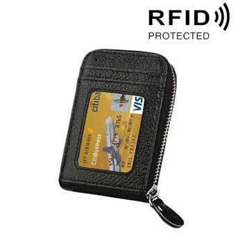 Γνήσιο δέρμα αγελάδας Αμιγές χρώμα φερμουάρ κάθετη κάρτα κάτοχος πορτοφόλι RFID μπλοκάρισμα κάρτα τσάντα προστατεύει υπόθεση με 12 υποδοχές καρτών, Μέγεθος: 11.5 * 7.5cm (Μαύρο)