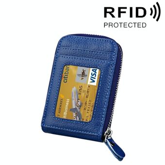 Γνήσιο δέρμα αγελάδας Αμιγές χρώμα φερμουάρ κάθετη κάρτα κάτοχος πορτοφόλι RFID μπλοκάρισμα κάρτα τσάντα προστατεύει υπόθεση με 12 υποδοχές καρτών, Μέγεθος: 11.5 * 7.5cm (μπλε)