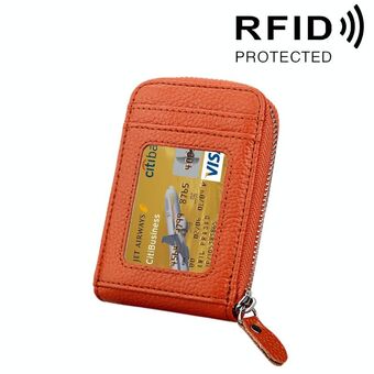 Γνήσιο δέρμα αγελάδας Αμιγές χρώμα φερμουάρ κάθετη κάρτα κάτοχος πορτοφόλι RFID μπλοκάρισμα κάρτα τσάντα προστατεύει υπόθεση με 12 υποδοχές καρτών, Μέγεθος: 11.5 * 7.5cm (πορτοκαλί)