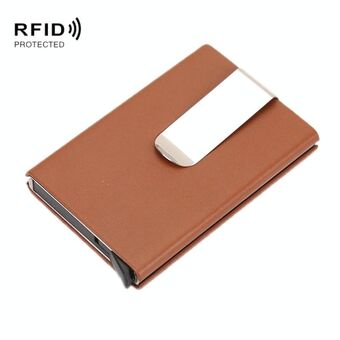 Aluminum Alloy Credit Card Case RFID Anti-Magnetic Metal Card Box(Microfiber Leather Apricot)