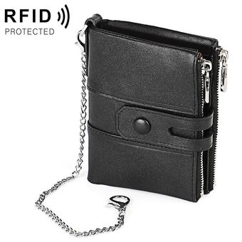 LT3529 Ρετρό Crazy Horse Υφή Διπλό φερμουάρ αντι-μαγνητική RFID αλυσίδα πορτοφόλι με υποδοχές για κάρτες (Μαύρο)