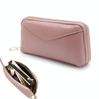 9106 Μεγάλης χωρητικότητας φερμουάρ δερμάτινα κλειδιά κάτοχος τσάντα πολλαπλών λειτουργιών πορτοφόλι (Rose Red)