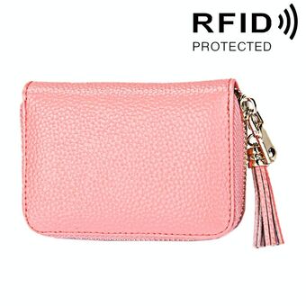 Genuine Cowhide Leather Solid Color Zipper Card Holder Wallet RFID Blocking Card Bag Protect Case Coin Purse with Tassel Pendant & 15 Card Slots for Women, Size: 11.1*7.6*3.5cm(Pink)