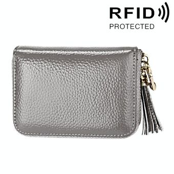 Genuine Cowhide Leather Solid Color Zipper Card Holder Wallet RFID Blocking Card Bag Protect Case Coin Purse with Tassel Pendant & 15 Card Slots for Women, Size: 11.1*7.6*3.5cm(Grey)