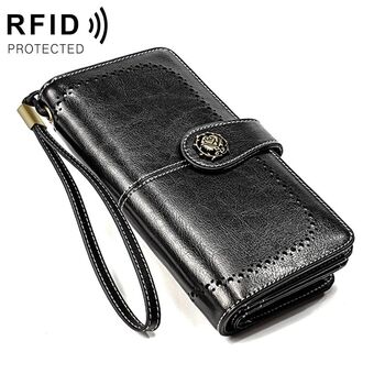 3555 Μεγάλης χωρητικότητας μακρύ πολλαπλών λειτουργιών αντιμαγνητικό RFID πορτοφόλι συμπλέκτη για κυρίες με υποδοχές για κάρτες (Μαύρο)