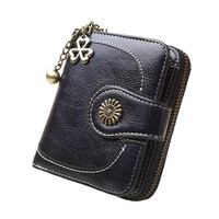 Vintage Button Phone Purses Women Wallets Female Purse Leather Brand Retro Ladies Long Zipper Woman Wallet Card Clutch(Short black)
