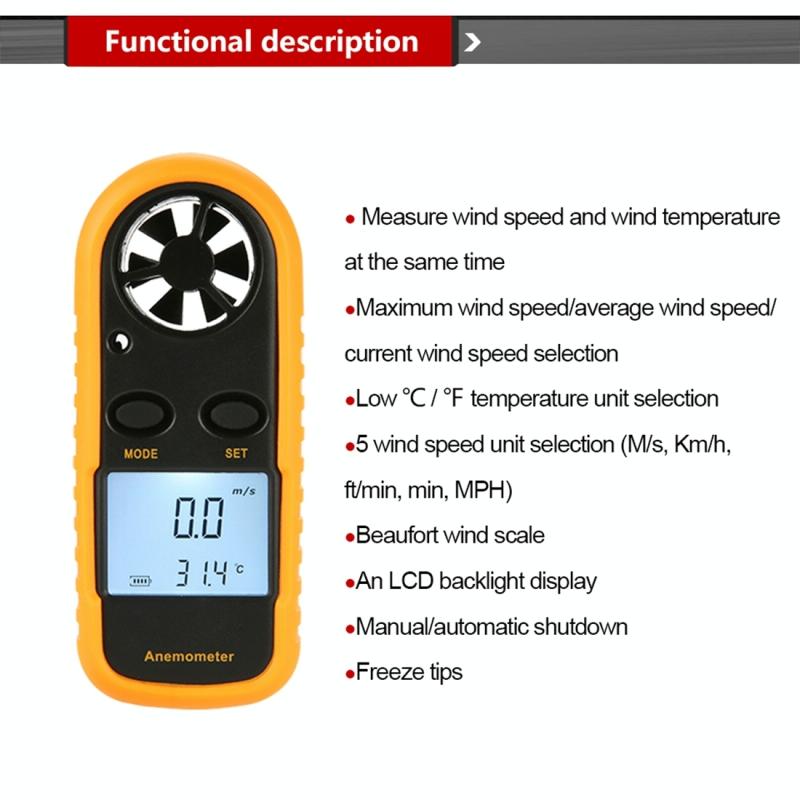 2. It is an ideal tool for windsurfing, sailing, kite flying and mountain-climbing. You can also use it for agriculture, industrial or home purposes such as measuring speed and temperature of CPU computer fans, air-conditioners, airflow over the roof or walls, and so on.