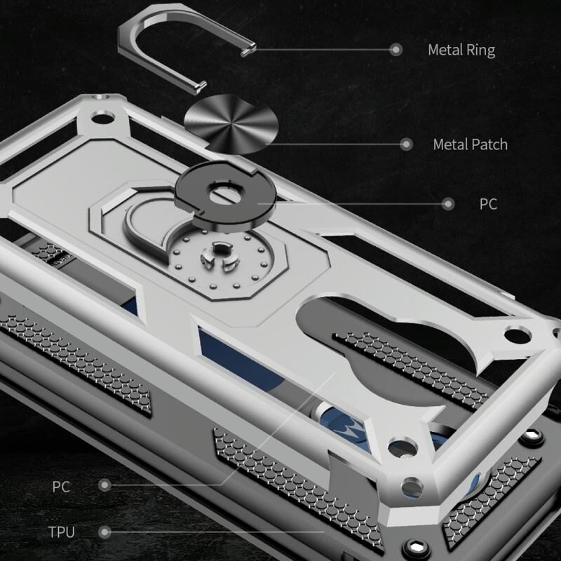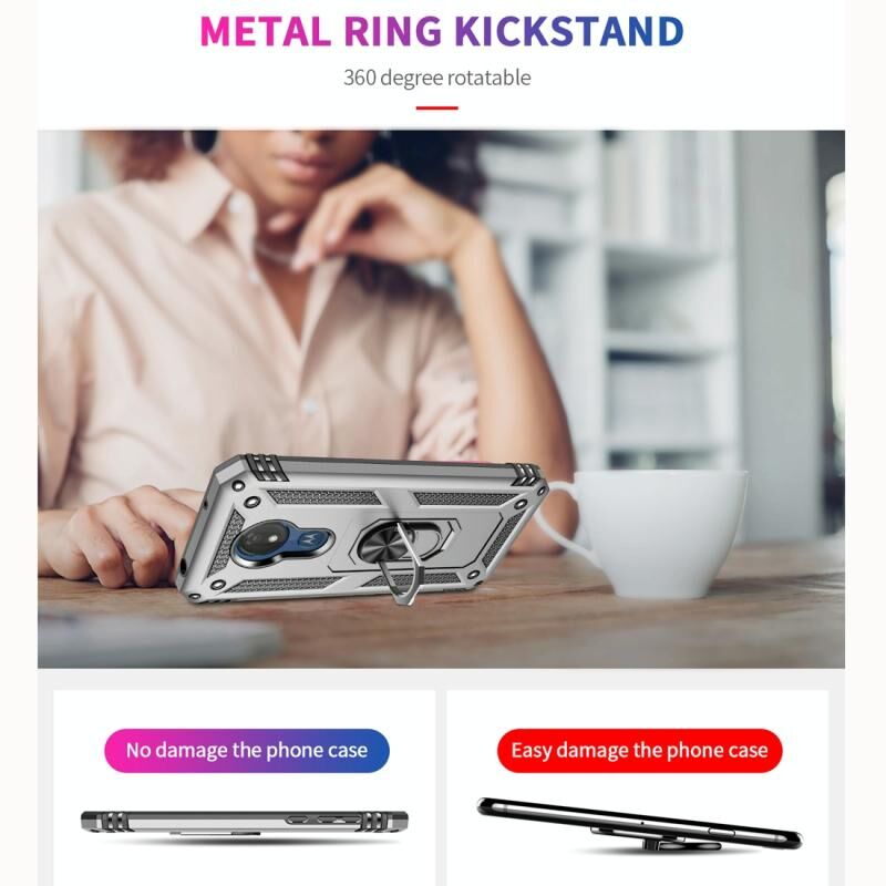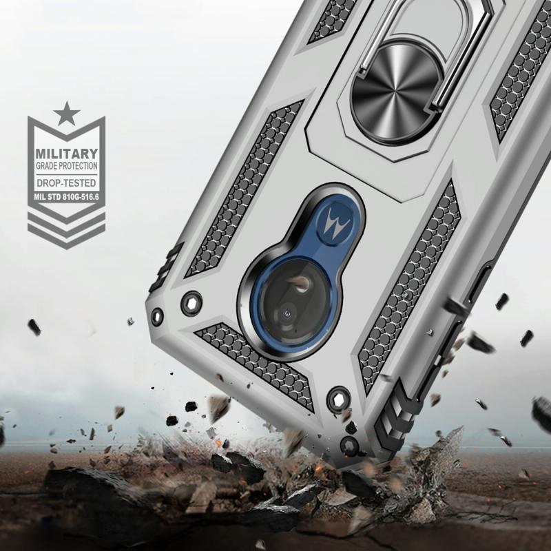 Armor Shockproof TPU + PC Protective Case for Motorola Moto G7 Power, with 360 Degree Rotation Holder (Silver)