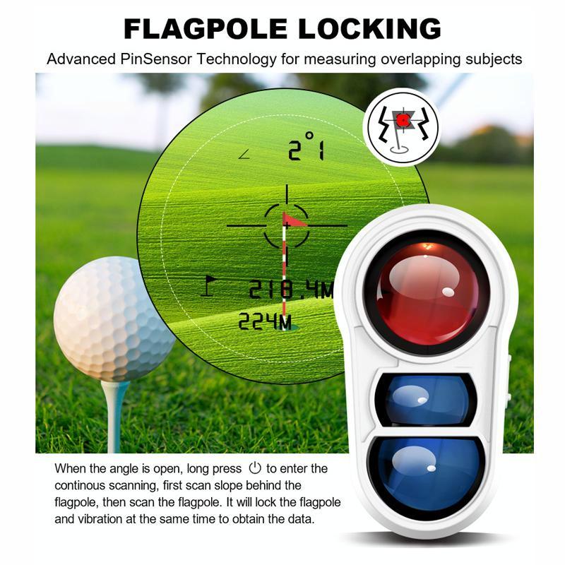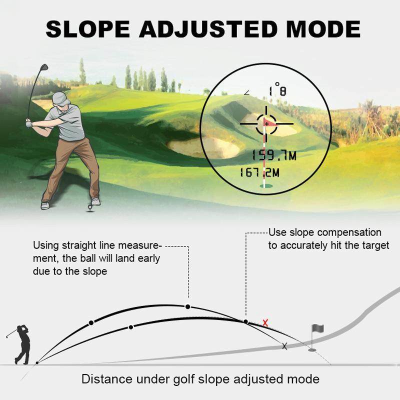6. Golf mode: slope technology + vibration technology, golfers will get compensated distance from the rangefinder according to the actual slope
