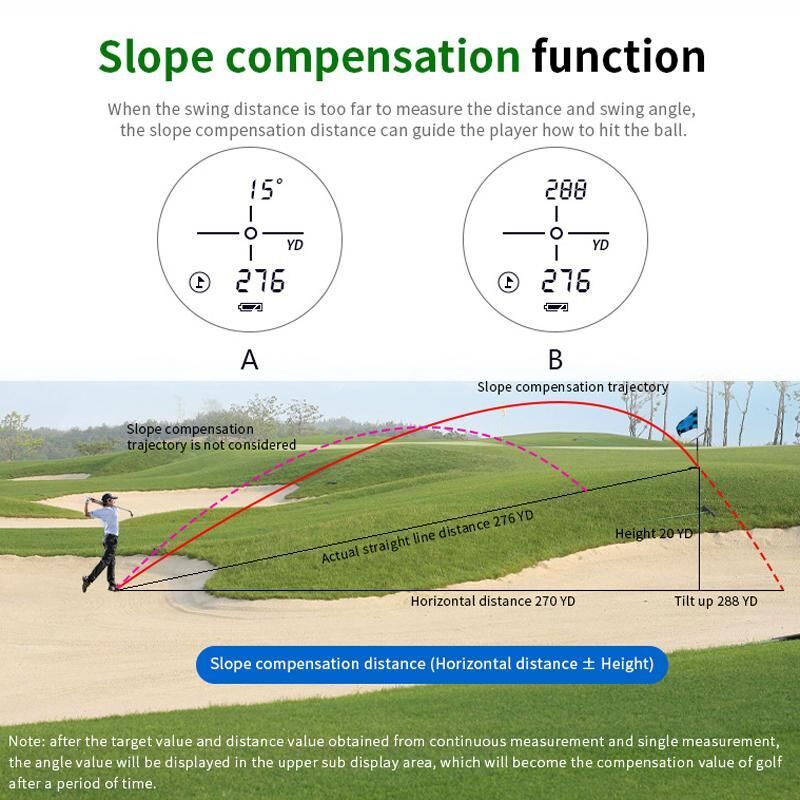 18. Slope compensation function, when the swing distance is too far to measure the distance and swing angle, the slope compensation distance can guide the player how to hit the ball