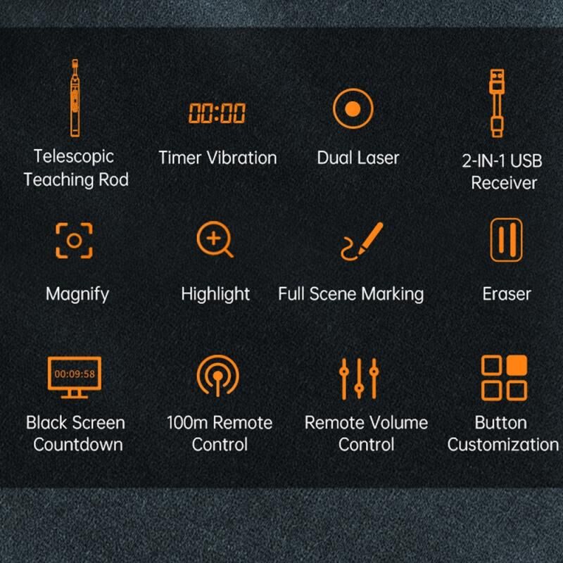 5. Η φωτεινότητα του πράσινου λέιζερ είναι ρυθμιζόμενη και το ψηφιακό χρώμα/μέγεθος/διαφάνεια της δέσμης λέιζερ στην οθόνη αφής είναι ρυθμιζόμενη (πρέπει να χρησιμοποιηθεί σε σύστημα Windows με οθόνη αφής και μπορεί να ρυθμιστεί στο ειδικό πρόγραμμα ASiNG)
