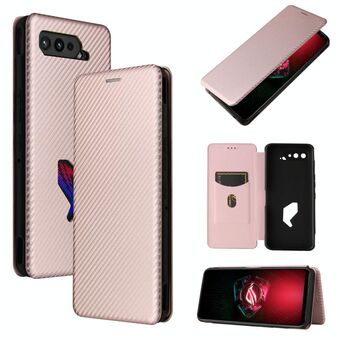For Asus ROG Phone 5 Carbon Fiber Texture Horizontal Flip TPU + PC + PU Leather Case with Card Slot(Pink)