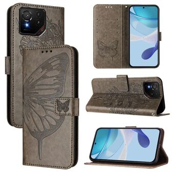 For Asus ROG Phone 9 / 9 Pro Embossed Butterfly Leather Phone Case(Grey)