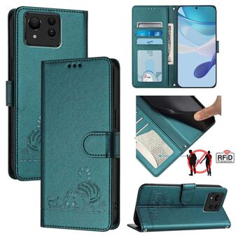 For Asus Zenfone 11 Ultra Cat Rat Embossed Pattern RFID Leather Phone Case with Lanyard(Peacock Green)