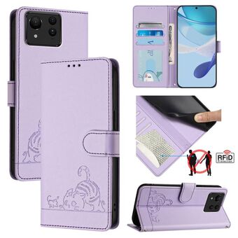 For Asus ROG Phone 8 Cat Rat Embossed Pattern RFID Leather Phone Case with Lanyard(Purple)
