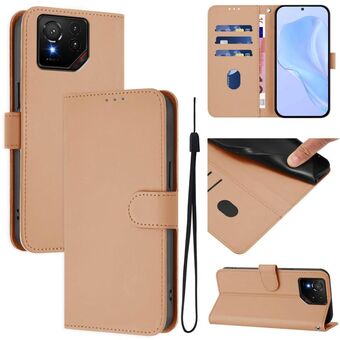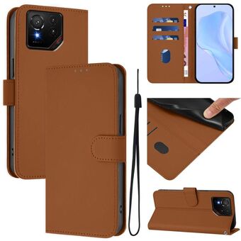 For Asus ROG Phone 8 / 8 Pro Skin Feel Solid Color Leather Phone Case with Lanyard(Brown)