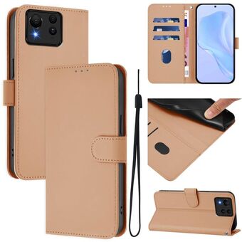 For Asus ROG Phone 8 / 8 Pro Skin Feel Solid Color Leather Phone Case with Lanyard(Brown)
