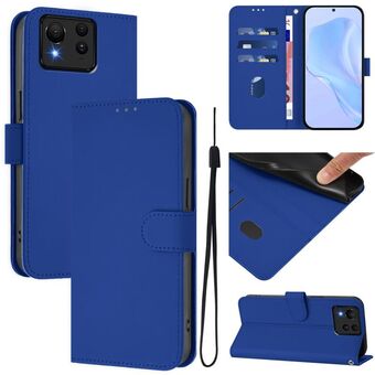 For Asus ROG Phone 8 / 8 Pro Skin Feel Solid Color Leather Phone Case with Lanyard(Dark Blue)