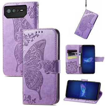 For Asus ROG Phone 6 Butterfly Love Flower Embossed Flip Leather Phone Case(Light Purple)