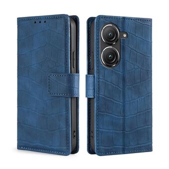 For Asus Zenfone 9 Skin Feel Crocodile Magnetic Clasp Leather Phone Case(Blue)