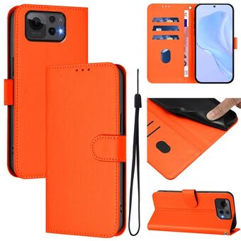 For Asus Zenfone 12 Ultra Skin Feel Solid Color Leather Phone Case with Lanyard(Orange)