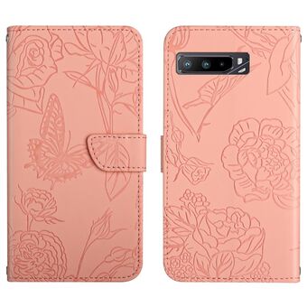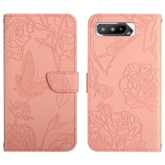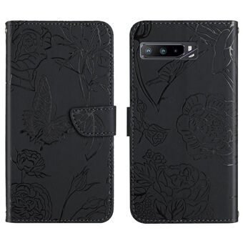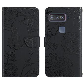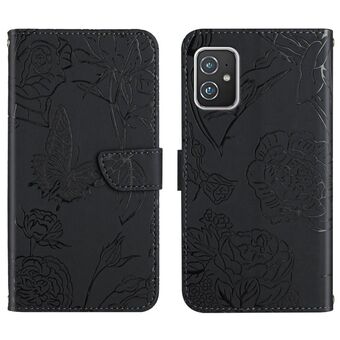 For Asus ZenFone 8 ZS590KS Skin Feel Butterfly Peony Embossed Leather Phone Case(Black)