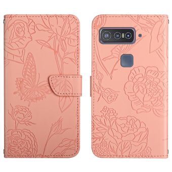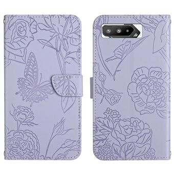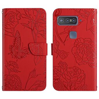 For Asus ZenFone 8 ZS590KS Skin Feel Butterfly Peony Embossed Leather Phone Case(Purple)