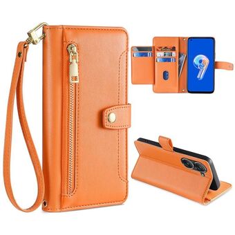For ASUS Zenfone 9 / Zenfone 9Z Sheep Texture Cross-body Zipper Wallet Leather Phone Case(Orange)