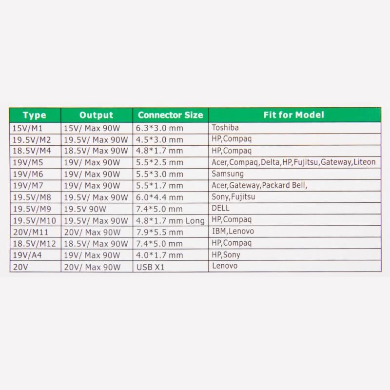 4. Διαφορετική τάση κατάλληλη για τους περισσότερους φορητούς υπολογιστές / φορητούς υπολογιστές