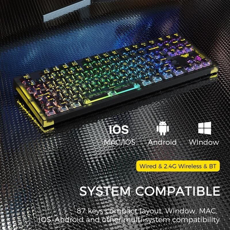 5. Συμπαγής διάταξη 87 πλήκτρων. Συμβατότητα με Windows, Mac, iOS, Android και άλλα συστήματα πολλαπλών συστημάτων.