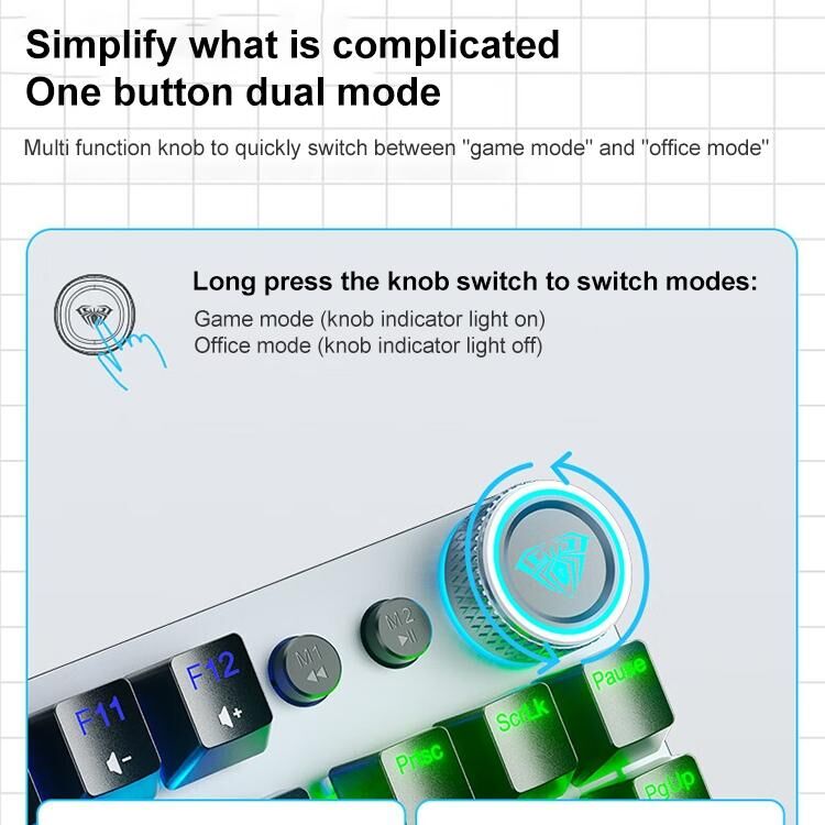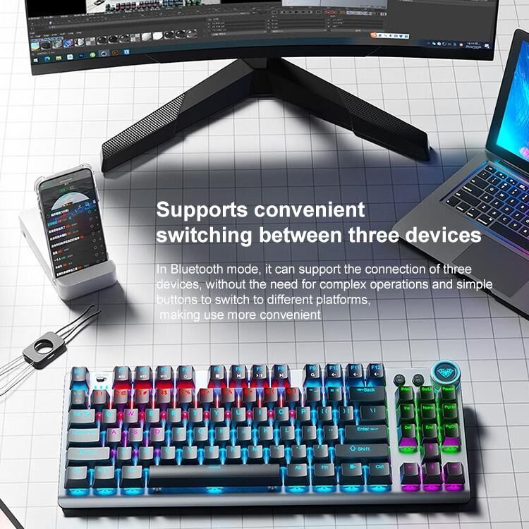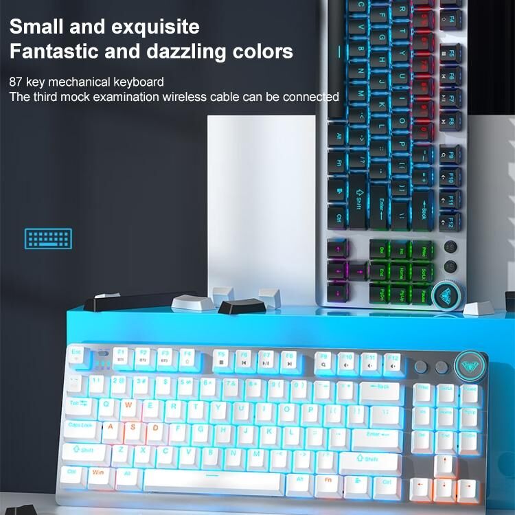 AULA F3001 Με οπίσθιο φωτισμό 87 πλήκτρα ενσύρματο/ασύρματο/Bluetooth Τρία μοντέλα μηχανικού πληκτρολογίου τυχερών παιχνιδιών (ασημί λευκό πράσινο άξονα) (AULA)