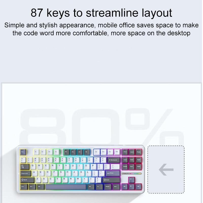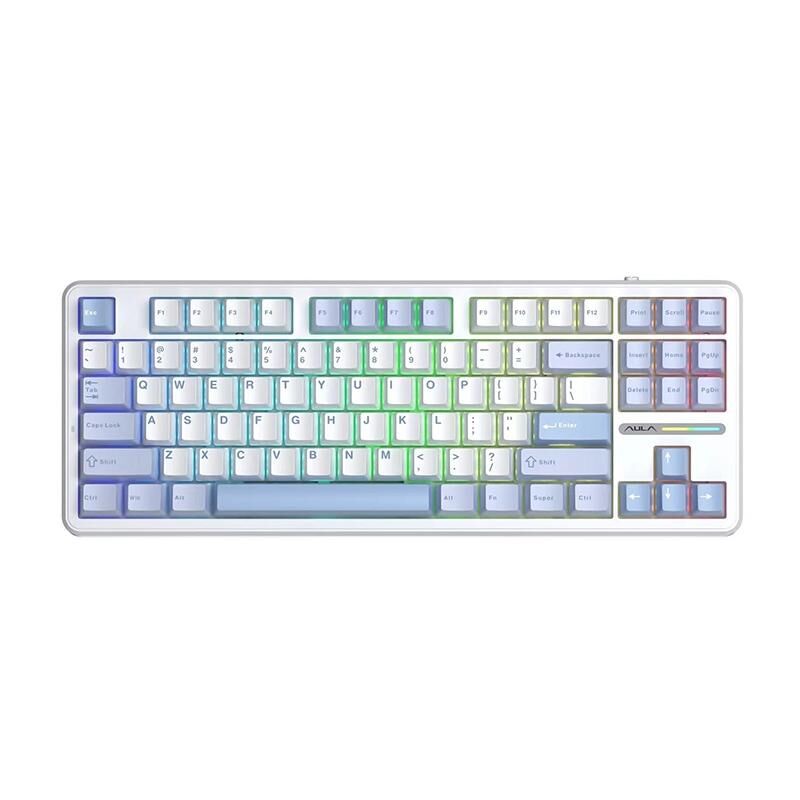 AULA F87 87 Keys Wired/2.4G/Bluetooth Three Model Customized RGB Mechanical Keyboard(Sea Salt Blue) (AULA)